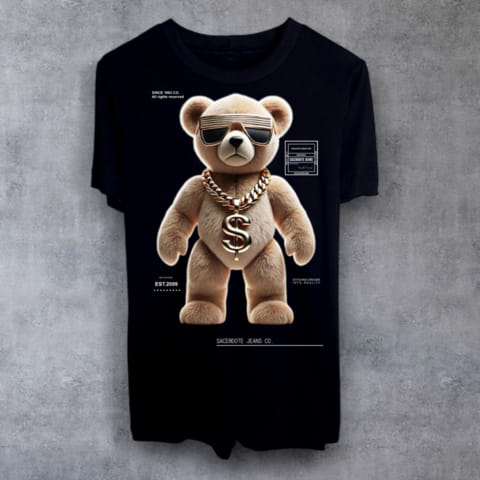 Regata Sacerdote Preta Urso Masculino